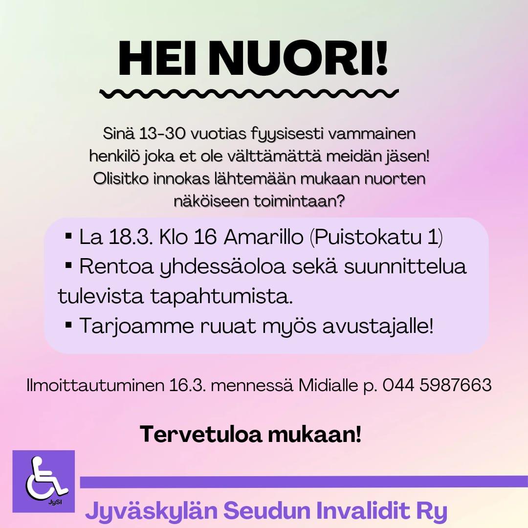 Sinä 13-30 vuotias fyysisesti vammainen henkilö (joka et välttämättä ole meidän jäsen) lähde mukaan!